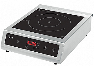 Плита электрическая, настольная, индукционная, 1 зона нагрева, кнопочное управление, 10 уровней мощности (500-3500 Вт), рабочая температура 60-240С, электронный таймер 0-180 мин, корпус из нерж.стали, поверхность из стеклокерамики.