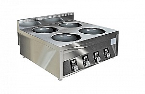 Плита 4конфорочная вок, столешница из нержавеющей стали марки AISI 304 толщиной 1,2 мм, корпус из нержавеющей стали марки AISI 430 толщиной 0,8мм.