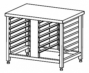 Неразборный, 2х7 уровней под GN 1/1, шаг 70, загрузка по стороне 325, задний ограничитель, в комплекте – 4 ограничителя для ног, обвязка с 4-х сторон, металл AISI 430, профиль 40х40