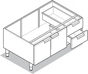 База под оборудование 600 линии, 2 дверцы, 2 ящика , сверху открытый, закрывается оборудованием, регулируемые опоры.