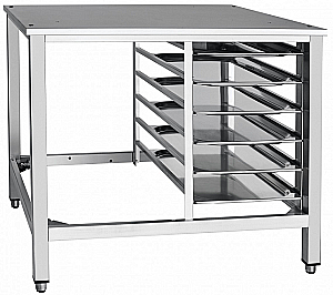 Подставка ПК-6М является вспомогательным оборудованием и предназначена для установки пароконвектомата типа ПКА на столешницу и размещения шести гастроемкостей GN 1/1 на держателях полок.