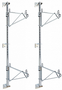 Комплектация: 2 опоры с настенными монтажными кронштейнами и четыре хромированные однополочные опоры, по две на ярус.