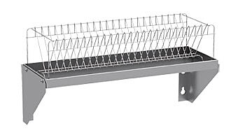 Полка состоит из кассеты для тарелок и поддона. Кассета представляет собой решетку из прутка, в ячейки которой помещаются тарелки. В поддоне предусмотрен небольшой уклон, обеспечивающий сток жидкости, поступающей с мокрой посуды к сливному отверстию.