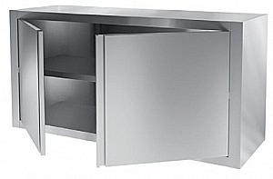 Неразборная, закрыта с 3-х сторон, полка-дно + промежуточная полка, двери распашные - 2 шт., металл AISI 430, чертеж 4628П-19_05_29-ПН - СТАНДАРТ