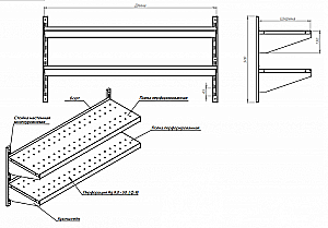ПОЛКА Д/СТЕЛЛАЖА НАСТЕННОГО 1200Х300 С БОРТОМ ПЕРФОРИРОВАННАЯ - 2 штуки