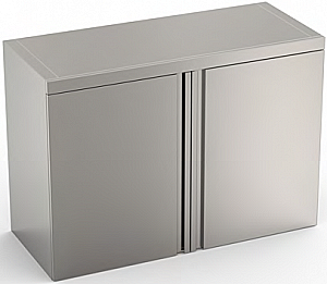 Настенный шкаф с распашными дверцами из нержавеющей стали AISI 304. Подвижная промежуточная полка, которую можно расположить на трех разных уровнях, опорную конструкцию необходимо закрепить на стене с помощью прилагаемых монтажных кронштейнов.