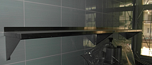 Полка навесная для хранения продуктов и кухонного инвентаря, габаритные размеры: длина 1800мм, ширина 300мм, высота 300мм; cплошная; из нержавеющей сталь 403