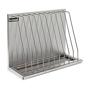 Полка настенная для досок КОБОР ПКД-60/35 - предназначена для хранения разделочных досок. Полка для досок имеет широкие ячейки, что позволяет хранить до 5 досок разной толщины. Внизу полки предусмотрен специальный поддон для сбора воды стекающей с досок. Поддон легко вынимается и жидкость из него удаляется.