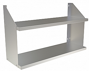 оснащена 2 полками, крепящимися на 2 планках. Изделие выполнено из нержавеющей стали AISI 430. Крепится к стене анкерными болтами