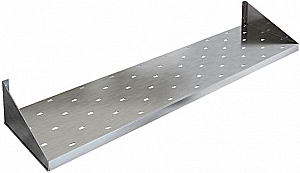 Полка перфорированная из нержавеющей стали AISI 430, разборная. Размещают над моечной ванной в моечном отделении, либо над производственным столом в кухонных цехах. Возможно размещение полок одна над другой. Полки перфорированные изготовлены из пищевой нержавеющей стали марки AISI 430, крепятся к стене при помощи двух боковых кронштейнов, которые можно установить как вверх(на фото) так и вниз для удобства размещения. Имеют сборную конструкцию. Рекомендуем крепить полки к влагоустойчивым поверхностям.