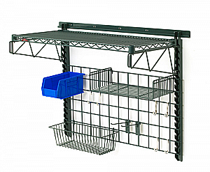 Полка-органайзер настенная, оснащённая держателями для посуды и инвентаря