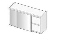 В комплекте с промежуточной полкой, которая регулируется на три различных высоты, несущая конструкция в комплекте с кронштейнами для настенного монтажа, поставляется в стандартной комплектации. С раздвижными дверями.