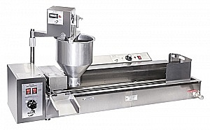 Аппарат оснащен электронным терморегулятором и дополнительным режимом поддержания масла при температуре не выше +160С. Аппарат формирует и отсаживает по одному пончику в ручей. Ванна имеет кольцевое движение фритюра. Переворот и выгрузка пончиков осуществляется автоматически.