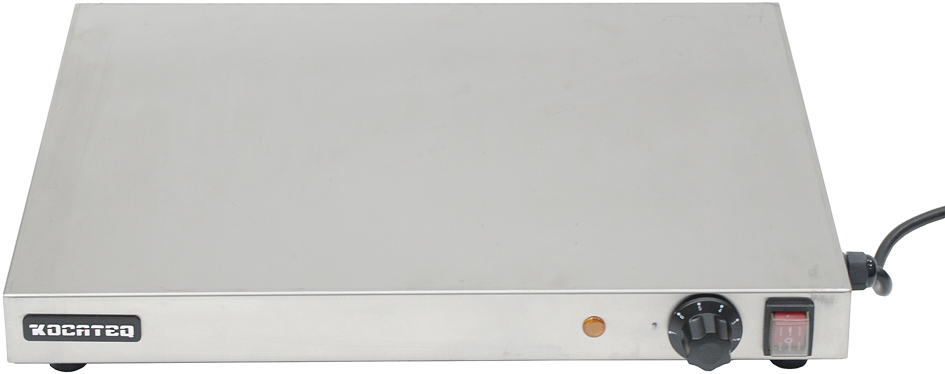 Гладкая поверхность из нержавеющей стали с размещенным под ней плоским нагревательным элементом, обеспечивающим равномерный нагрев по всей поверхности.