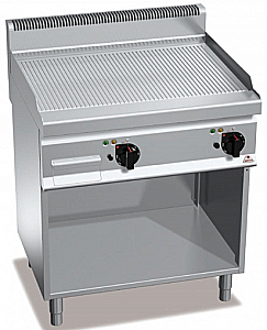 Рифленая жарочная поверхность из сатинированной стали с проволочной защитой от брызг.