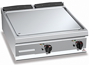 Двухкомпонентная варочная поверхность, сочетающая для оптимизации однородности стальную пластину и верхнюю отделку из нержавеющей стали AISI 316 с гладкой отделкой, отлично чистящаяся и обладающая низким излучением тепла, что обеспечивает наибольшее удобство для оператора.