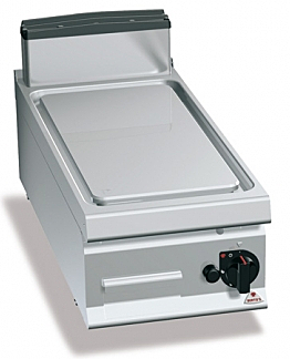 Двухкомпонентная варочная поверхность, сочетающая для оптимизации однородности стальную пластину и верхнюю отделку из нержавеющей стали AISI 316 с гладкой отделкой, отлично чистящаяся и обладающая низким излучением тепла, что обеспечивает наибольшее удобство для оператора.
