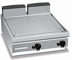 Двухкомпонентная варочная поверхность, сочетающая для оптимизации однородности стальную пластину и верхнюю отделку из нержавеющей стали AISI 316 с гладкой отделкой, отлично чистящаяся и обладающая низким излучением тепла, что обеспечивает наибольшее удобство для оператора.
