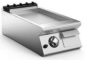 Поверхность жарочная газовая с гладкой наклонной поверхностью из нержавеющей стали AISI 304. Полностью сварная конструкция гарантирует простоту очистки.