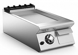 Поверхность жарочная газовая с рифленой наклонной поверхностью из нержавеющей стали AISI 304. Полностью сварная конструкция гарантирует простоту очистки.