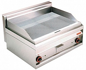 Жарочная поверхность оснащена двумя пакетным переключателями, у которых предусмотрена независимая регулировка температуры от 0 до 300 °C для двух рабочих зон аппарата. Это дает возможность готовить разные блюда одновременно. Наличие борта по периметру поверхности позволяет предотвратить разбрызгивание жира при приготовлении блюд. На лицевой панели расположен лоток для сбора масла и жира.
