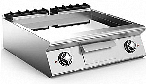 Электрическая жарочная поверхность с двумя зонами нагрева с гладкой хромированной наклонной поверхностью, изготовленная из нержавеющей стали AISI 304. 15/10.