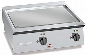 Жарочная поверхность на гладкая толстая с округленными бортами, встроенная, с периметральным каналом для сбора остатков от жарки.