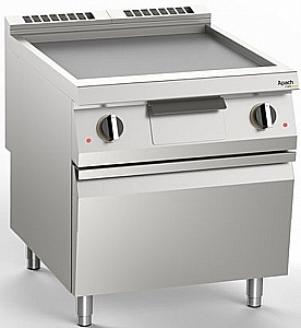 1/3 рифленая хром, 2/3 гладкая хром, на закрытой подставке, термостат, нерж. сталь Aisi 304, толщина стали рабочей поверхности 2 мм, регулируемые по высоте ножки из нержавеющей стали