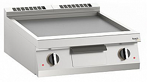 Модель оснащена гладкой жарочной поверхностью из конструкц. стали, толщиной 15 мм, с одной зоной нагрева, размером 735 x 530 мм. Нагрев производится армированными нагревательными элементами из нержавеющей стали.