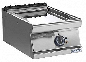 Гриль-сковорода электрическая настольная оснащена гладкой стальной рабочей поверхностью с 1 зоной нагрева, с бортом с трех сторон, термостатом.