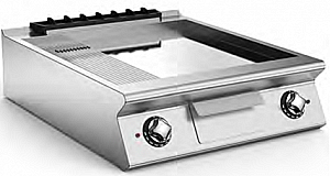 С двумя жарочными зонами с наклонной плитой: 1/3 ребристая, 2/3 гладая