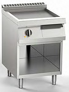 Электрическая жарочная поверхность с наклонной конфоркой: 2/3 гладкая 1/3 ребристая, изготовлена из нержавеющей стали Aisi 304.