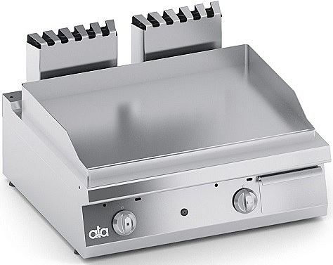 Литая рабочая поверхность из нержавеющей стали наклонена к обезжиренной массе, которая соединена с поддоном под варочной поверхностью. Оснащен ящиком для отвода жира.