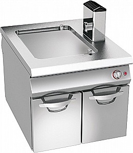 В низу шкаф с изолированными распашными дверями и жаростойкой хромированной ручкой.