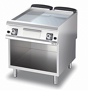 Внешний корпус и ножки из нержавеющей стали. Регулируемая высота столешницы от 840 до 900 мм. Утопленная конфорка, на 40 мм ниже поверхности рабочей поверхности. Горячая поверхность с твердым полированным хромированием. Пластина наклоняется на 10 мм вперед. Большой ящик для жира. Горелка с самостабилизирующимся пламенем. Регулировка и регулировка температуры с помощью предохранительного крана и термопары (200-400 ° C) или термостата с предохранительным клапаном с термопарой (110-280 ° C)