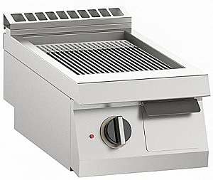 Гриль-сковорода электрическая настольная с рифленой хромированной поверхностью с 1 зоной нагрева, с электромеханическим управлением, бортом, изготовлена из нержавеющей стали. Габариты поверхности - 335х530мм. Температурный режим: от +110 до +280С.