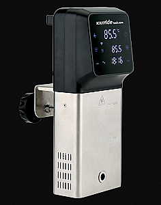 Эта профессиональная модель разработана таким образом, что при помощи зажима расположенного на задней стенке устройства можно закрепить термостат на боковой стенке любого подходящего контейнера из нержавеющей стали или поликарбонатной посуды емкостью до 50 литров, тем самым вы получаете водяную баню Sous Vide с регулируемой рабочей температурой От 5 ° C до 99 ° C, с точностью 0,0 7 ° C. Технология циркуляции воды в емкости гарантирует отсутствие горячих и холодных зон. Таймер может быть установлен от 1 минуты до 99 часов. По окончании времени приготовления устройство уведомит вас как звуковым сигналом, так и по индикатору, продолжая работать. С помощью сенсорного управления кнопками вы можете легко установить требуемую температуру. Эта модель также имеет защиту от низкого уровня воды, то есть, если вы случайно включите устройство пустым или дадите уровню воды опуститься ниже необходимого минимума, термостат отключится и уведомит вас звуковым сигналом и индикацией. Термостат полностью изготовлен из нержавеющей стали.