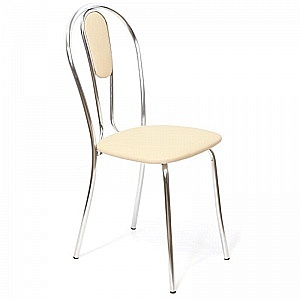 Стул Венус М с обивкой из кожзаменителя бежевого цвета. Каркас выполнен из хромированного металла. Спинка со вставкой из того же материала, что и сиденье. Ножки снабжены заглушками для сохранности напольного покрытия. Стул подходит как для домашнего использования, так и для мест общественного питания. Основание сиденья и спинки: фанера.