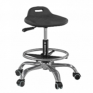 Табурет полиуретановый на газлифте. Полиуретановое сиденье устойчиво к воздействию воды, кислот, щелочей, к воздействию искр и к кратковременному воздействию высокой температуры (негорючее), благодаря этим свойствам обеспечивается безопасность рабочего пространства и лёгкость в уходе. Регулируемые по высоте сиденье и опорное кольцо для ног обеспечивают общий комфорт рабочего пространства. Отверстие для руки позволяет легко перемещать стул по всей площади помещения.