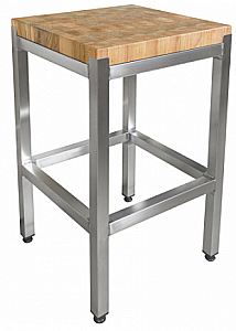 Модель оснащена регулируемыми по высоте ножками, что позволяет компенсировать неровности пола. Каркас выполнен из квадратной трубы квадратного 40х40 мм из нержавеющей стали AISI 304 столешница - из бука толщиной 50 мм.