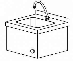 Настенный, неразборный, борт, одна цельнотянутая мойка 300х240х150, отв. под гусак, столешница - металл AISI 304, кран-гусак, гибкая подводка-4шт, смеситель предварительный, нажимной механизм и выпуск в комплекте, чертеж 12286П-24_08_27-РМ - СТАНДАРТ