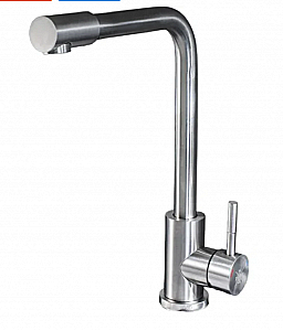 Одноручковый смеситель для кухни из нержавеющей стали с высоким изливом прекрасно подойдет для мойки любого размера, обладает наклонным аэратором.