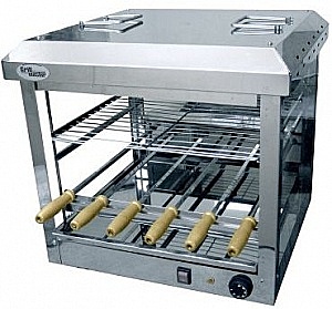 Есть подъем крыши с ТЭНами и электропривод шампуров. Автоматическое вращение шампуров. В комплекте поддон -1 шт. и решетка для барбекю -1 шт.
