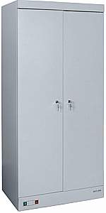 Металлический сушильный шкаф ШСО - 2000 используется для сушки одежды и обуви. Модель оснащена съёмными сетчатыми полками, которые дают возможность рационально использовать внутреннее пространство сушильного шкафа, например, просушивать одежду различной длины. Сушильные шкафы ШСО - 2000 могут быть подсоединены к вытяжной вентиляции. С этой целью на крыше шкафа расположен фланец для подсоединения гофротрубы.