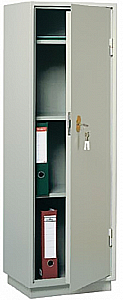 Металлический шкаф КБ-021, односекционный, дверь закрывается на ключевой замок "Kale". Корпус и дверь шкафа изготовлены из стального листа толщиной 2 мм, дверь изнутри усилена фальш-панелью.
