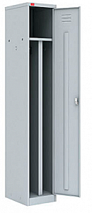 Шкаф разборный металлический односекционный с двумя отделениями, для хранения сменной одежды. Шкаф снабжен дверью с индивидуальным врезным замком, полкой под головной убор, в отделении перекладина для вешалки.