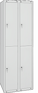 Шкаф металлический двух-секционный с четырьмя независимыми ячейками закрываемых замками, поставляется в собранном виде, упакованные в гофракартон стянутый упаковочной лентой
