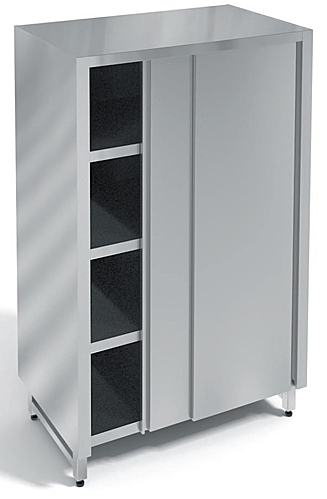 Неразборный, закрыт с 3-х сторон, полка-дно + 3 промежуточных полки, двери-купе – 2 шт., металл AISI 430, профиль 20х40, чертеж 4562П_19_05_21-Шк - СТАНДАРТ