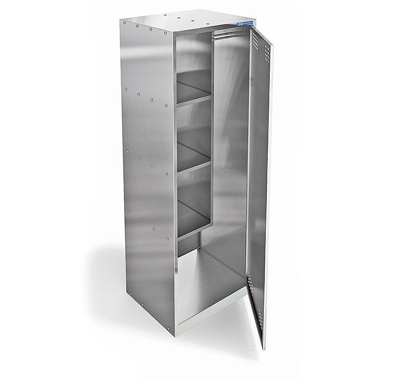 Шкаф для хозинвентаря, каркас: сталь с порошковой покраской, дверь с замком, 3 полки, 2 из них регулируются по высоте, перекладина, 2 крючка