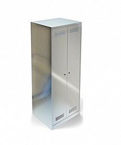 Шкаф из нержавеющей стали AISI 430, две секции, верхняя и нижняя полка, перекладина, замок. Шкаф используется для хранения одежды и личных вещей работающего персонала. Шкаф для одежды имеет сварную конструкцию из нержавеющей стали. Две распашные двери.